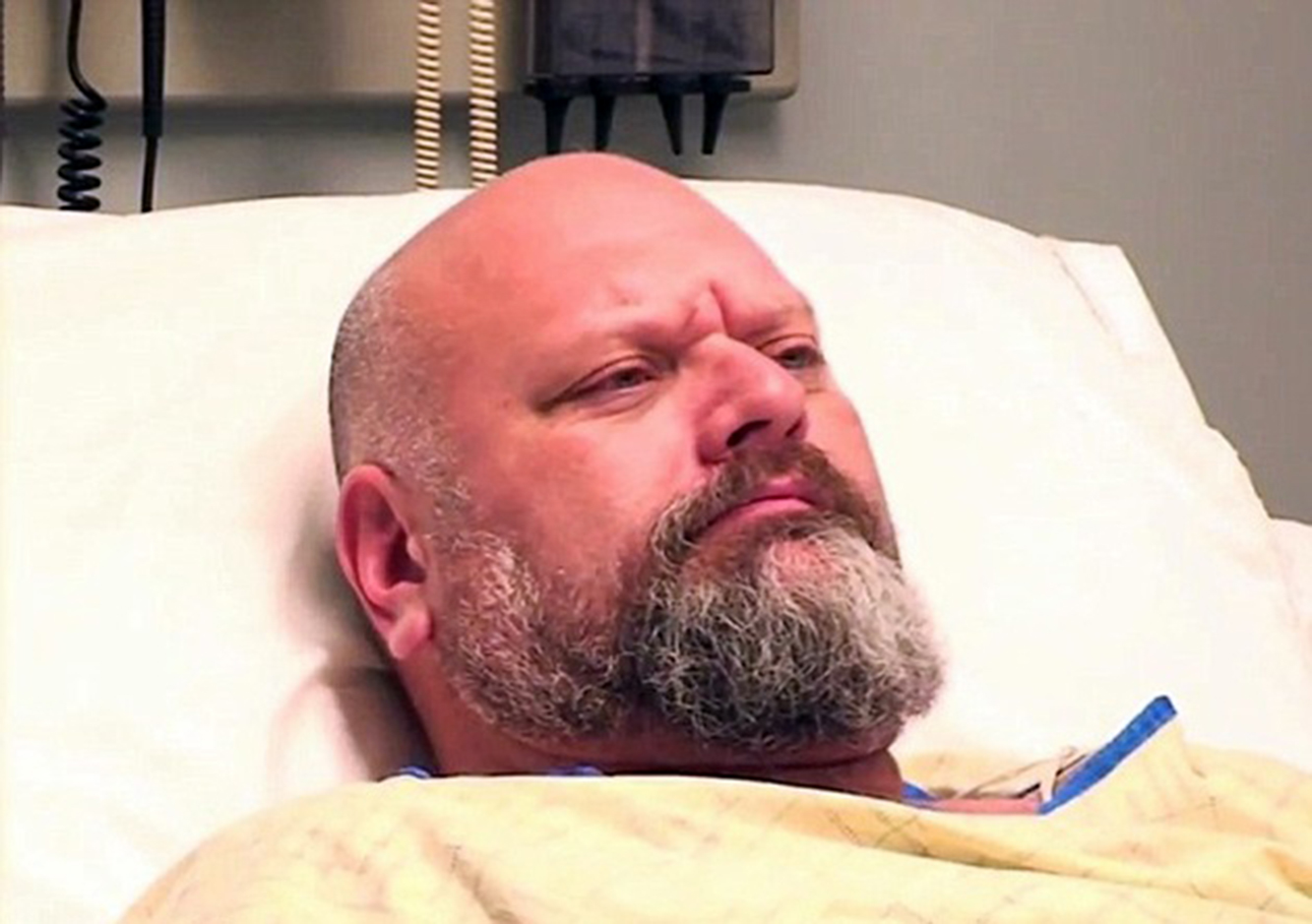 El paciente, al despertar, confuso, se entera de que después de beber se subió al volante de su automóvil y tuvo un accidente que le causó un coma prolongado.