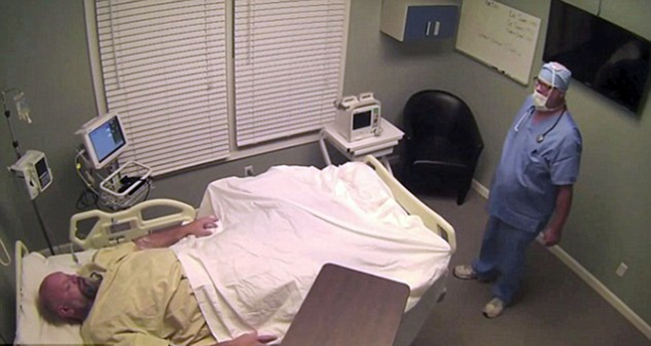 Después de desmayarse, el hombre fue puesto en un espacio de oficinas vacío, transformado en una sala de hospital, con enfermeras, médicos y televisión.